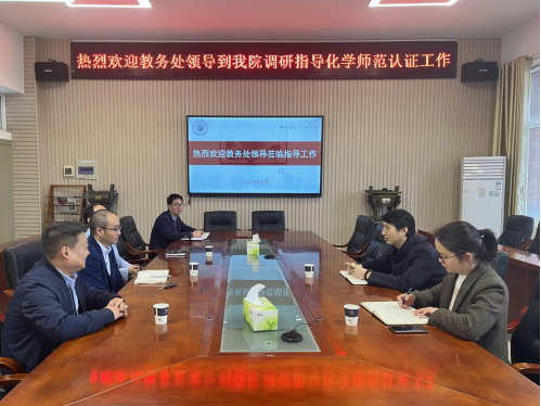 为保证化学师范专业认证工作的顺利进行,2023年3月8日上午,教务处副处长刘乐承莅临化学与环境工程学院指导化学师范专业认证工作,化工学院党委书记刘桂生、院长颜学敏、副院长吴爱斌和化学系主任舒文明及相关负责人在308会议室参与会议。