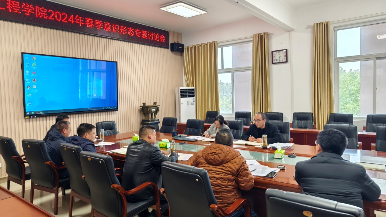 2024年3月18日下午,化工学院党委理论学习中心组在14教西303会议室开展2024年春季意识形态工作专题讨论。会议由党委书记王丽主持。 研讨会上各位领导就当前的意识形态领域形式进行了分析,对意识形态管理重点领域,课堂讲授、学生教育、学院媒体平台等具体工作进行了梳理、开展了讨论。大家一致认为,意识形态工作是党的一项极端重要的工作,事关党的前途命运,事关国家长治久安,事关民族凝聚力和向心力,高校在意识形态教育引导方面又肩负重任,必然也必须要管好做好。 王丽最后强调,领导干部要率先垂范、以身作则,自觉做习近平新时代中国特色社会主义思想的坚定信仰者、积极传播者、忠实践行者,做到思想上坚定;用习近平新时代中国特色社会主义思想武装头脑,统一思想、统一意志、统一行动,做到政治上清醒;要严格规范管理课堂教学行为,紧盯关键人、关键事,做到行动上敏锐。引导师生在思想上、政治上、行动上同以习近平同志为核心的党中央保持高度一致。要将意识形态工作与师德师风、党风廉政建设一起抓一起落实,守住底线、不越红线。 (审稿:王丽;编辑:王志权)