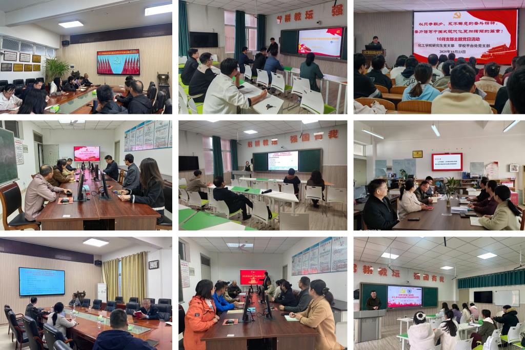 为深入学习贯彻习近平新时代中国特色社会主义思想,持续筑牢师生党员思想根基,凝聚奋进力量,2025年10月,化工学院在全院范围内开展了政治理论学习活动,各党支部相继组织开展了支部主题党日活动。