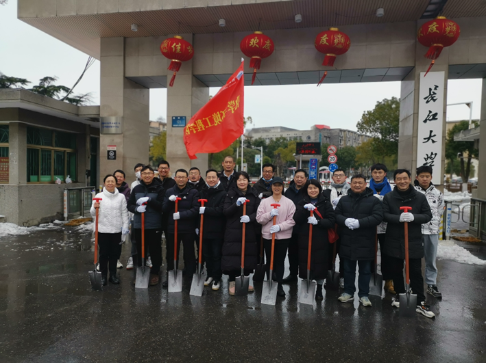 (通讯员 汪志悠 周学素)近日,受强冷空气影响,荆州出现寒潮大风和低温雨雪冰冻天气,漫天冻雨冰粒和降雪交织而降,道路积雪结冰。学校开学在即,为确保师生安全顺利返校,方便学校周边群众出行,减少安全隐患,化工学院积极开展铲雪除冰行动。
