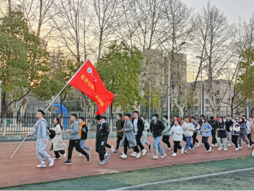仪式最后,在鲜亮的院旗下,化工学院学生会成员带领大家绕着田径场奔跑,带着对未来的憧憬勇敢前行。