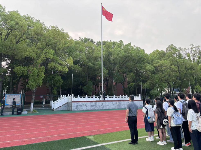 (通讯员 王梦睿 蔡 略)5月27日早上7:00,化学与环境工程学院在西校区田径场隆重举行升国旗仪式。辅导员蔡略和化工学院2023级全体本科生参加。仪式由环境工程32301班谢欣雨主持。