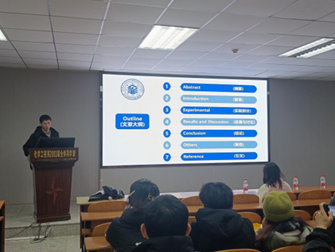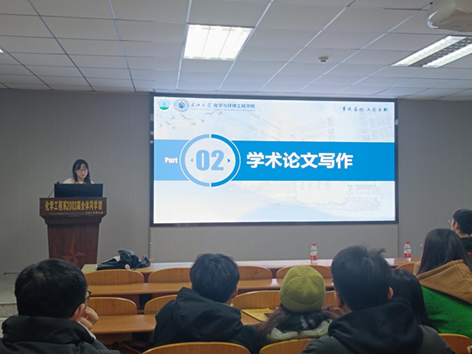 (通讯员 聂琳珊 粟灿)为了进一步提高同学们学术论文写作能力,了解学术论文写作要求及技巧。2023年11月30日晚7时,化学与环境工程学院于14教北201举办2023年本科生学术论文写作培训会。本次培训由21级研究生申利伟、20级本科生张欣媛主讲,辅导员周学素老师和21级、22级部分同学到场参加。