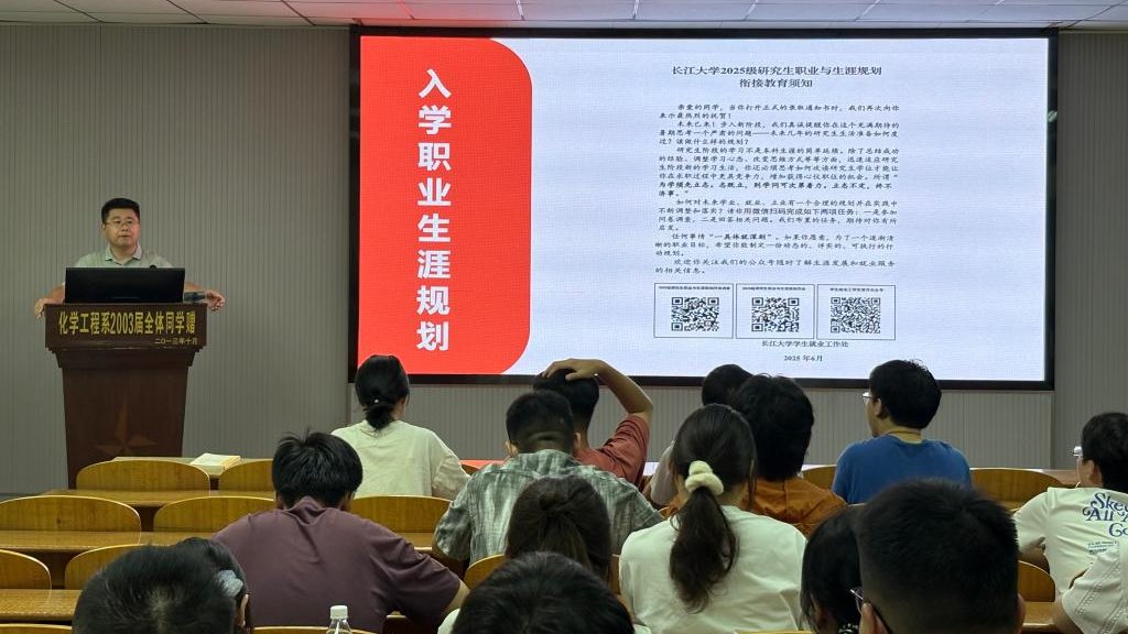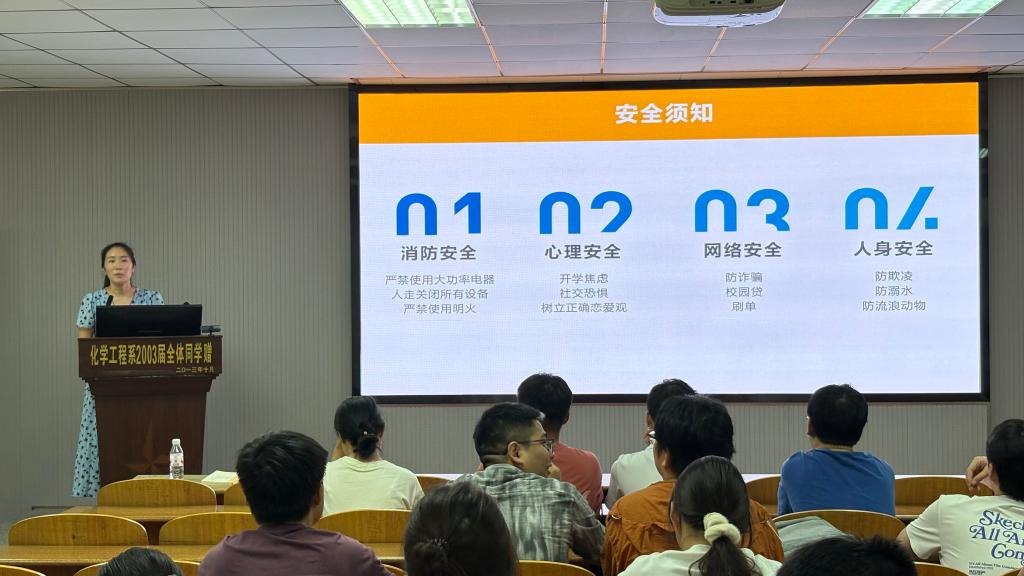 辅导员王陈系统讲解了消防安全、心理安全、网络安全和人身安全相关内容,强调学术诚信与考试纪律,并组织集中学习了《长江大学学生请假办法》等多项规章制度,提醒大家严守校纪校规,成为德才兼备的研究生。