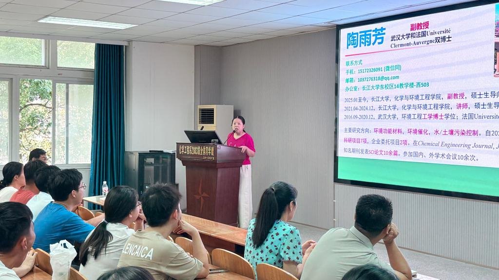 (通讯员 李天宇)9月16日上午10时,化学与环境工程学院2025级研究生新生见面主题班会在14教北201教室顺利召开。学院副院长肖围、党委副书记杨会军、教学办主任张文杰、研究生导师代表陶雨芳、王昭,辅导员王陈及全体新生共同与会。