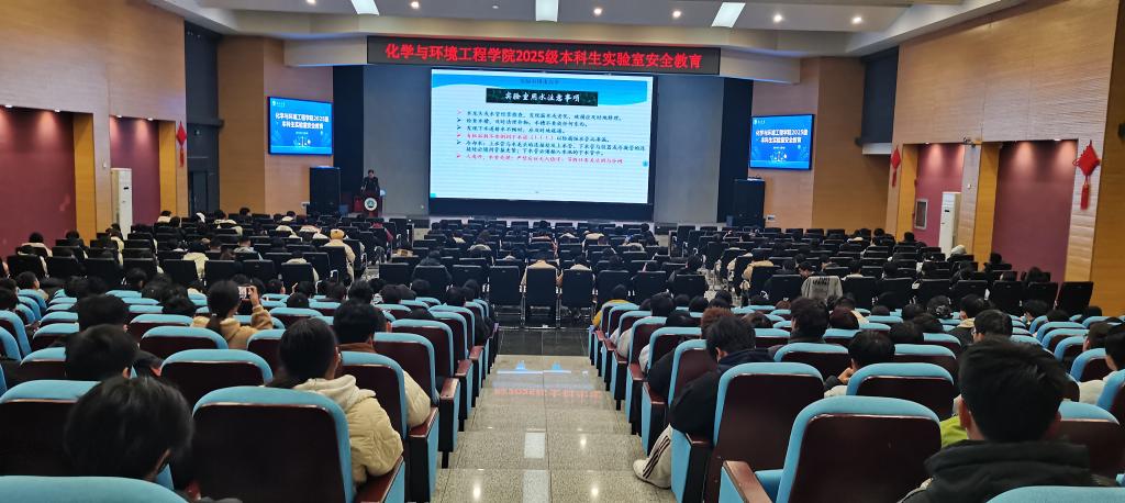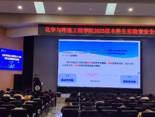 (通讯员 徐子朔)为切实增强学生安全意识,筑牢实验安全防线,12月4日晚,化学与环境工程学院在西校区农科大楼1058学术报告厅面向2025级本科生举办实验室安全教育专题讲座。本次讲座由院长助理、实验室中心主任黄河老师主讲,辅导员徐茵老师及2025级全体本科生参加。