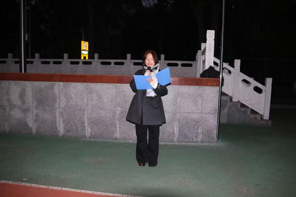 (通讯员 付涛)12月15日清晨7时,化学与环境工程学院在西校区田径场举行“弘扬优良学风,争做时代新人”主题升旗仪式。学院党委副书记杨会军、辅导员徐茵、兼职辅导员付涛及2025级全体学生共同参加。仪式由化学32502班程梦汐同学主持。