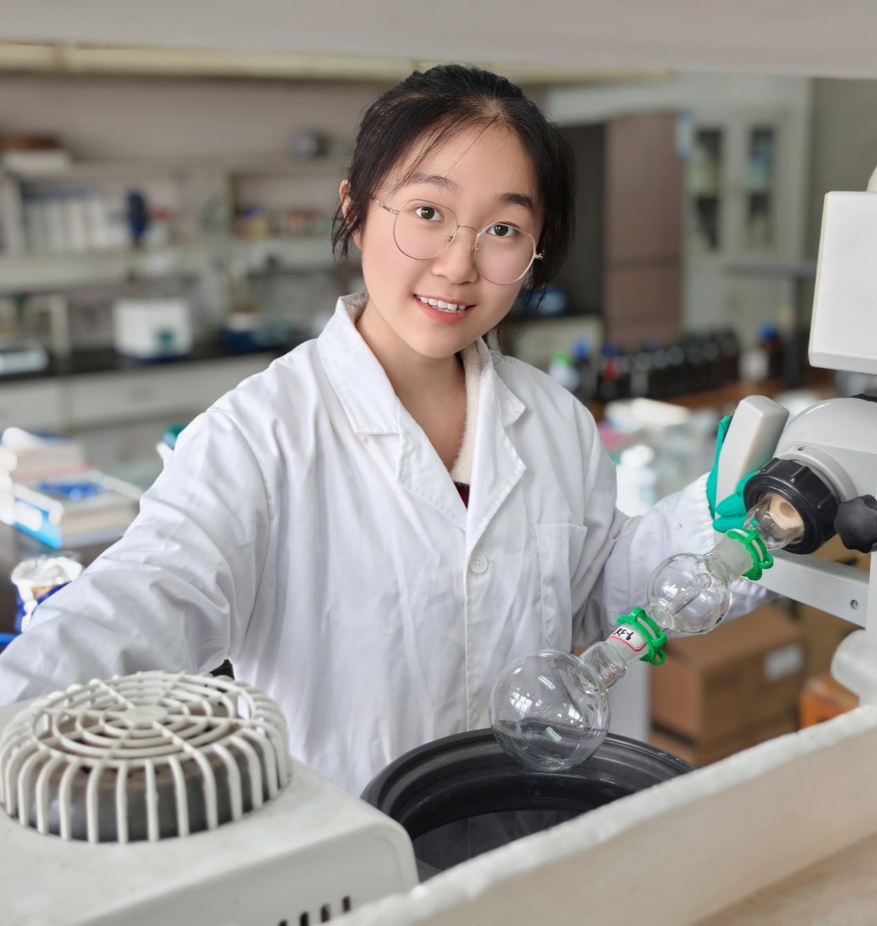 在专业学习之外,南文婧同学还十分注重培养科研实践能力。自大二起,她进入学院舒文明副教授课题组。在实验室里,她经历从基本单元操作的学习到独立完成一个完整的实验的蜕变。目前以第一作者身份完成1篇SCI,已投递于EJOC期刊,并以第三作者在EJOC发表论文1篇。她还积极参加各类学术活动,以负责人身份荣获湖北省学术创新成果报告会一等奖,小“挑战杯”铜奖,中国国际大学生创新大赛三等奖等,主持并完成校级大创1项。这些科研经历不仅提升了她的学术能力,更培养了她严谨求实的治学态度。