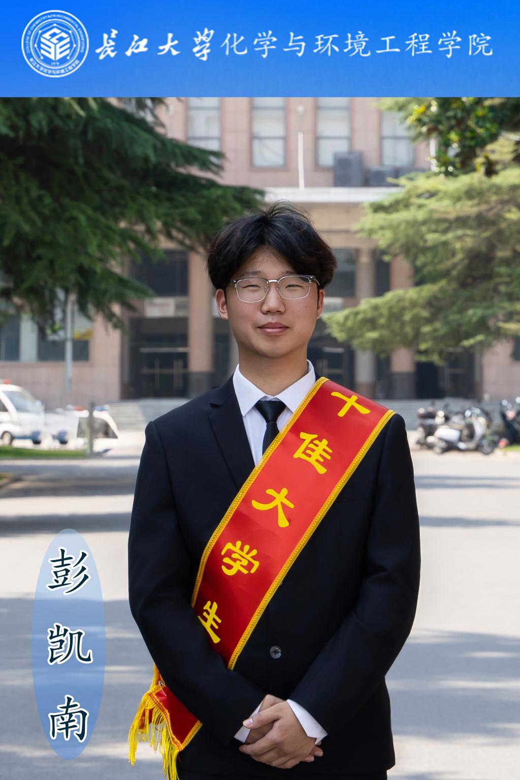 【个人简介】彭凯南,男,汉族,中共预备党员,河南驻马店人,长江大学化学与环境工程学院应化12102班学生,曾担任班级军训负责人、辅导员助理、院学生会副主席等多个学生骨干职务。