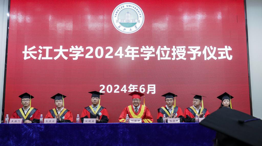 6月17日中午,根据学校安排,学院在就业宣讲大厅隆重举行2024年学位授予仪式。校党委常委、纪委书记、湖北省监察委员会驻长江大学监察专员刘靖军、院长颜学敏、党委副书记杨会军及系部导师代表莅临现场,学院毕业年级辅导员、毕业生家长代表及获得学位的2024届毕业生参加。院长颜学敏为到场的毕业生正衣冠,刘靖君书记为毕业生拨穗授学位。在师长亲友的共同见证下,全体毕业生拨穗正冠,扬帆起航,开启人生新篇章。