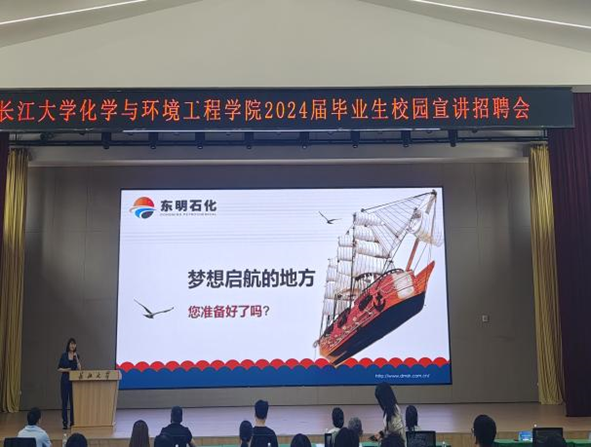 (通讯员 蔺月天)426日上午,化工学院于东校区四食堂三楼大学生活动中心举办2024届毕业生校园宣讲招聘会。湖北民腾新材料科技有限公司、太和气体(荆州)有限公司、山东东明石化集团有限公司等8家用人单位来校招贤纳才。