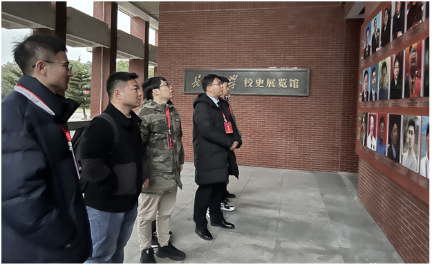 党委副书记杨会军带领博士们漫步校园,介绍了学校创新港建设情况,在校史长廊向博士们介绍了学校办学历史和优势特色。