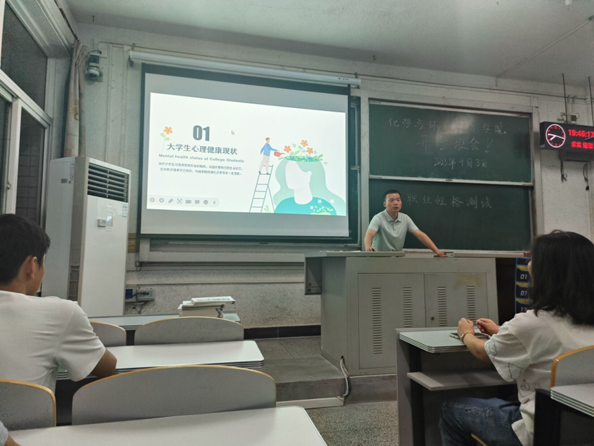 为提高大学生心理调适的能力,保持同学们的心理健康,化学与环境工程学院于9月3日晚上,以班级为单位召开2023级新生心理健康主题教育班会。