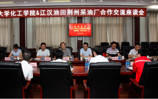 会上,刘书记首先对李波峰厂长、胡永杰书记等江汉油田采油厂领导们的热烈欢迎表示感谢,接着介绍了长江大学学校、学科、学者、学术等方面的情况。十五分钟的荆采视频推介片后,荆采工程师简要介绍了油气勘探开发情况以及目前存在的主要困难和技术瓶颈问题;杨欢副院长着重介绍了化工学院优势特色项目及科研方向,回顾了双方前期合作的科研项目完成情况。