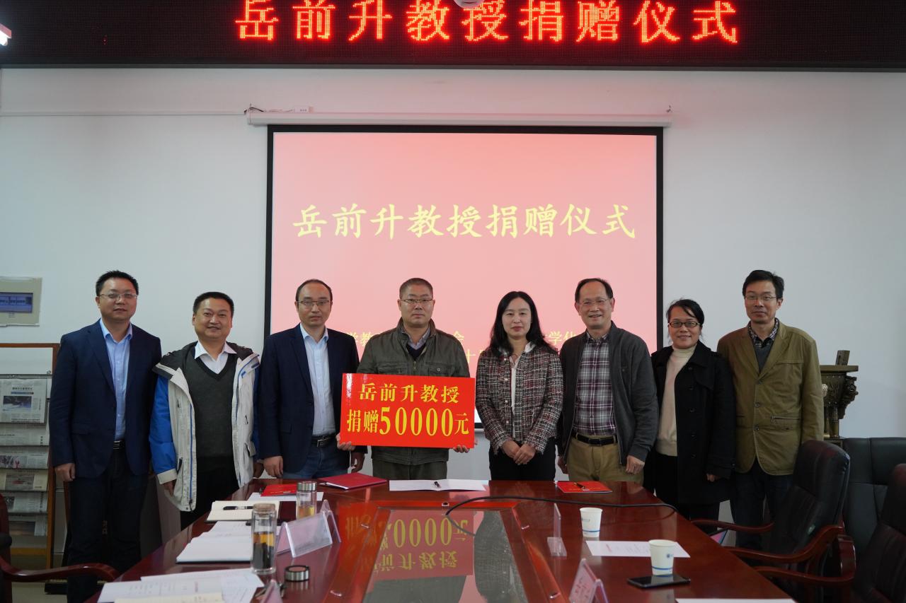 新闻网讯(通讯员 胡薇 单婷婷)师魂常沐春色远,德馨永育桃李芳。10月20日下午,在14教303会议室,化学与环境工程学院举行捐赠仪式,学院岳前升教授向该院捐赠人民币5万元,用于奖励优秀学生和学院发展。学校教育发展基金管理办公室、化工学院相关负责人等参加仪式。仪式由化工学院党委书记刘桂生主持。