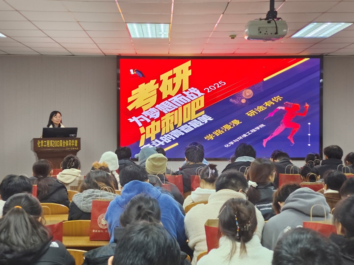 (通讯员 郑引弟)2025年全国硕士研究生招生考试在即,为缓解考研学子备考压力,助力学子坚定信心,化工学院于12月12日上午在14教北201举办2025年考研慰问活动。学院党委书记王丽,副书记杨会军,辅导员严瑾、王娜、王陈、周学素出席本次活动。