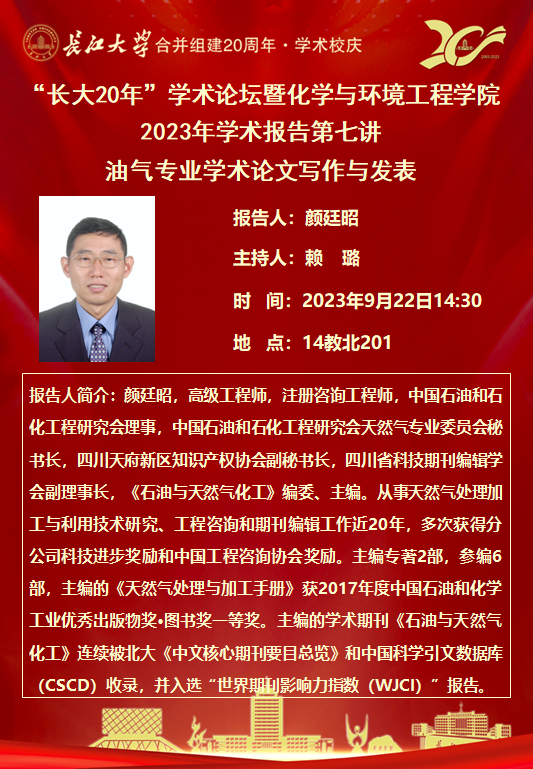 “长大20年”学术论坛暨化学与环境工程学院2023年学术报告(六)