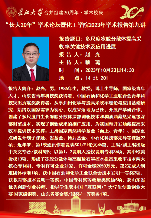 “长大20年”学术论坛暨化工学院2023年学术报告第九讲