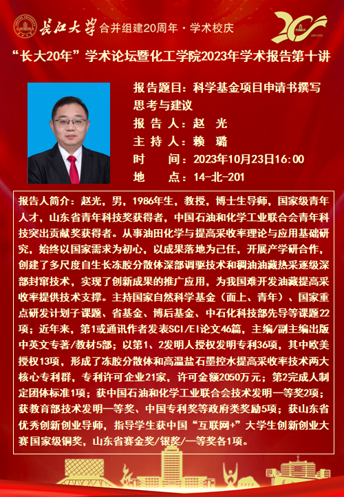 “长大20年”学术论坛暨化工学院2023年学术报告第十讲