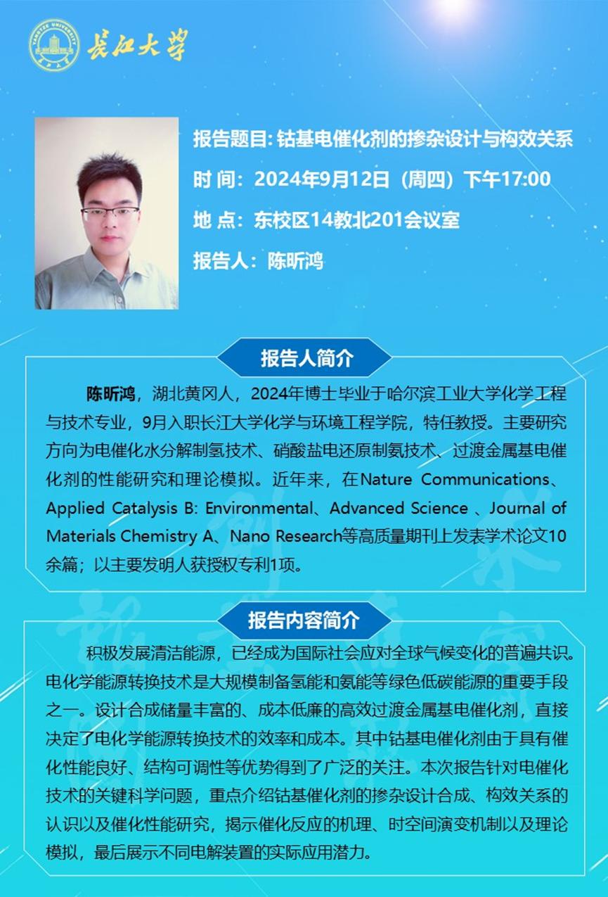 长江化工讲坛:钴基电催化剂的掺杂设计与构效关系