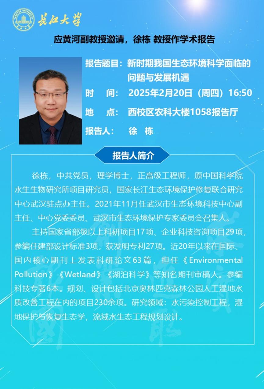 长江化工讲坛:新时期我国生态环境科学面临的问题与发展机遇