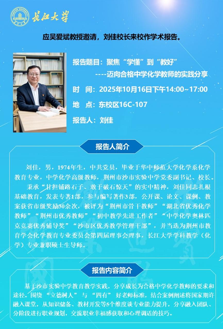 长江化工讲坛:聚焦“学懂”到“教好”----迈向合格中学化学教师的实践分享