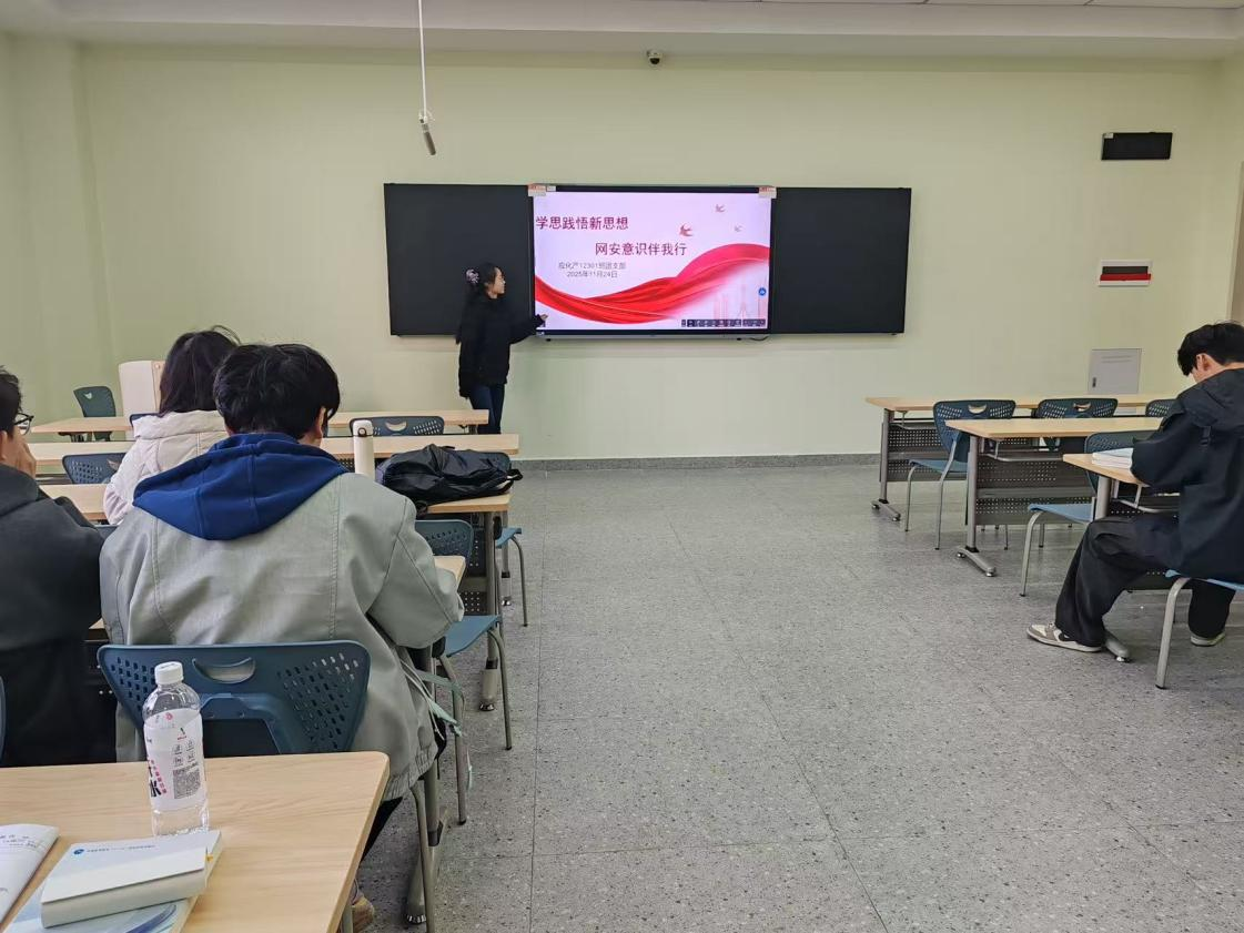 (通讯员 王晨睿)为深入学习贯彻党的二十届四中全会精神,紧跟时代步伐,敏锐捕捉时政热点,引导广大团员青年关注国家大事、培养家国情怀与全球视野。依据校团委的统一安排,在学院团委的组织下,各团支部于11月14日至11月30日开展“学思践悟新思想,网安意识伴我行”主题团日活动。